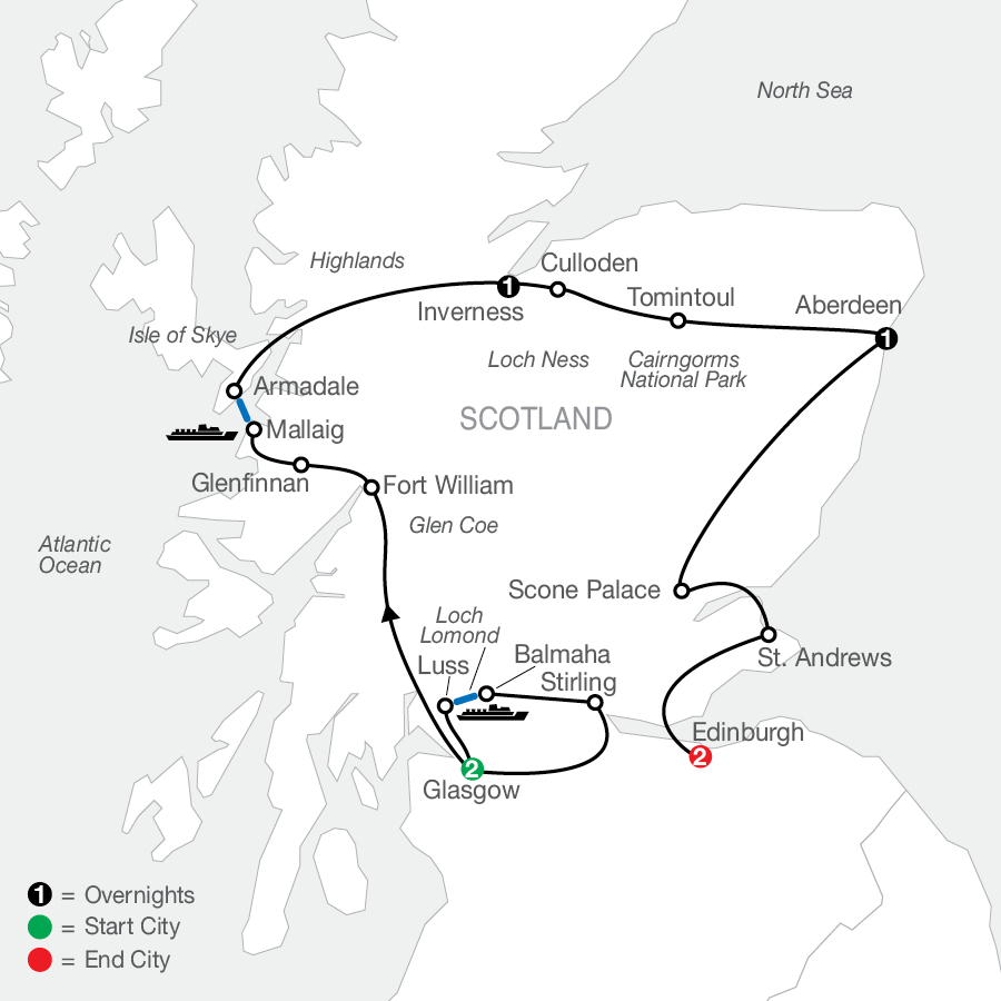 Rolling hills and rugged coastlines, mythical creatures and elusive monsters, quiet fairways and boisterous bagpipes, this tour of Scotland is a study in stark contrasts among the most beautiful of classrooms. Hitting the highpoints of the Highlands from Glasgow to Edinburgh, you’ll cruise on beautiful Loch Lomond, ferry to the dramatic Isle of Skye, and visit the home of golf, St. Andrews. More lush landscapes await as you search for the mysterious Nessie along the banks of Loch Ness, stand before the famous Glenfinnan viaduct featured in the Harry Potter films, and swoon over the 13th-century Eilean Donan Castle nestled on a tidal island and featured in numerous films. If green means go, you have the go-ahead to pack your tams, tartans, and knickers for vibrant and verdant Scotland.